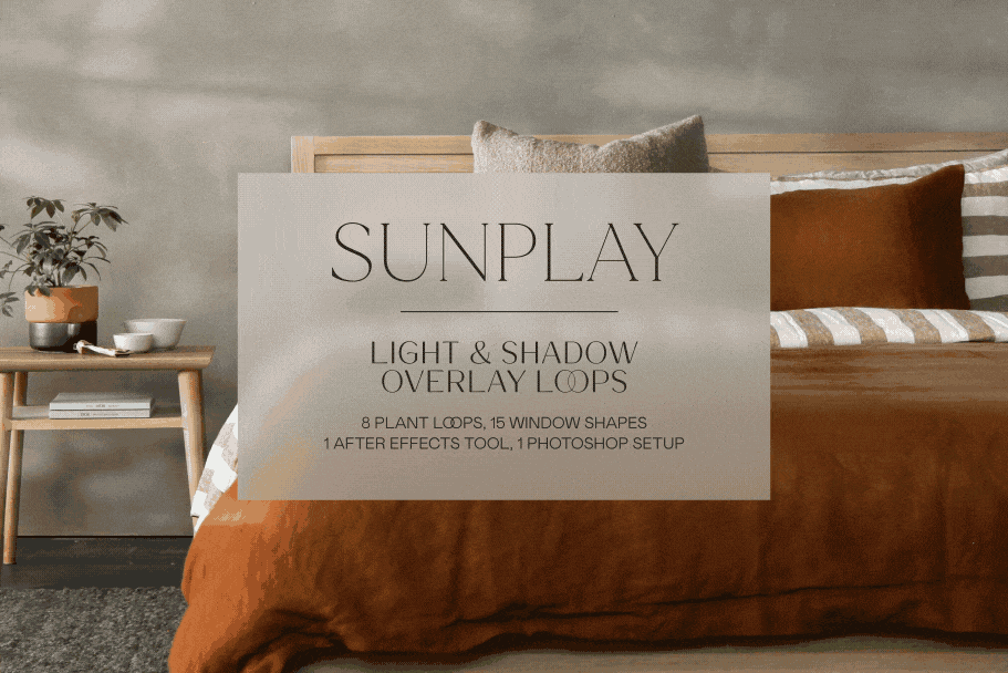 Sunplay is light and shadow overlay loops. Create the perfect mood for your product shots, life yo your online store, movement to your mockups and other images that need seamless loops.